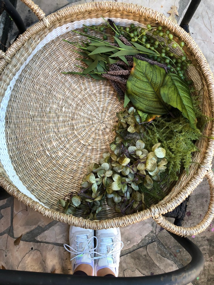 Select a variety of succulents, the night before snip the succulents and place them in a basket so the stems will harden over night.