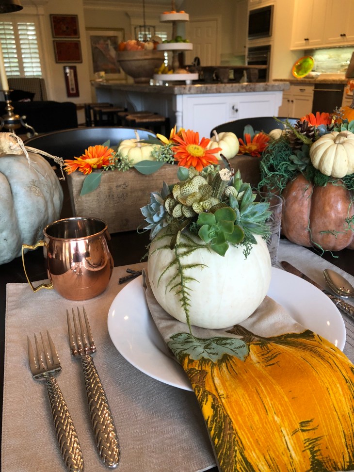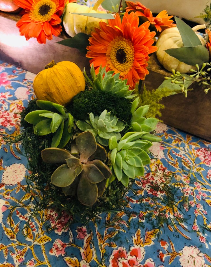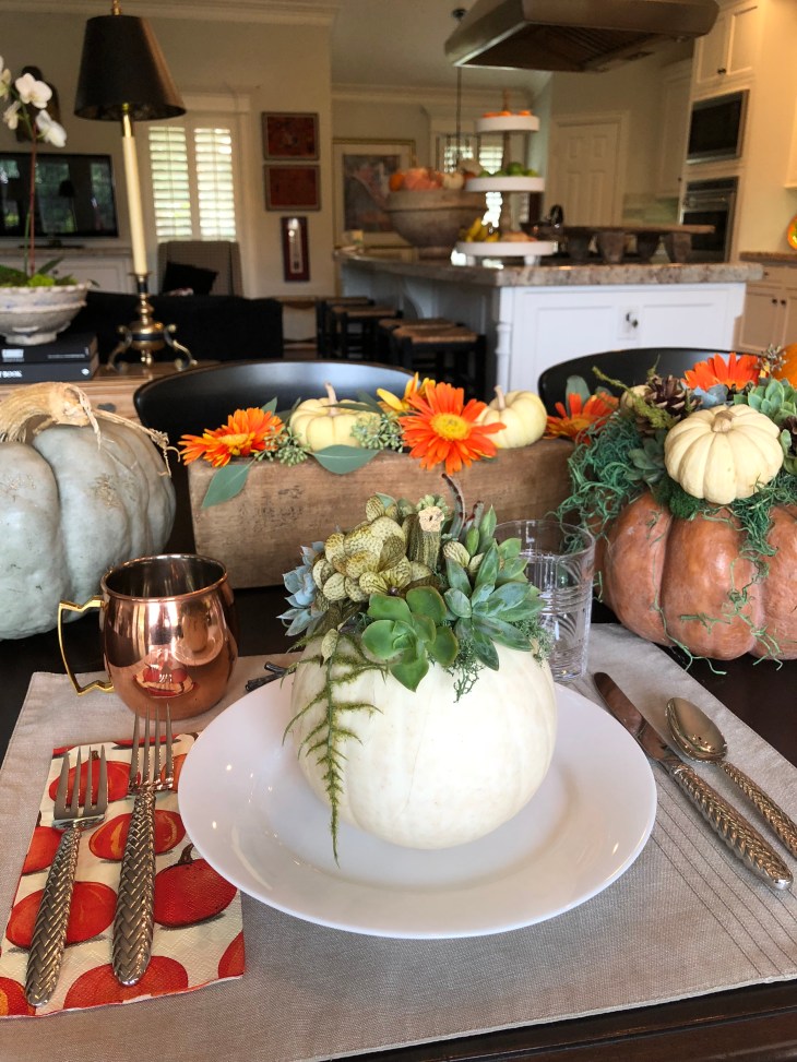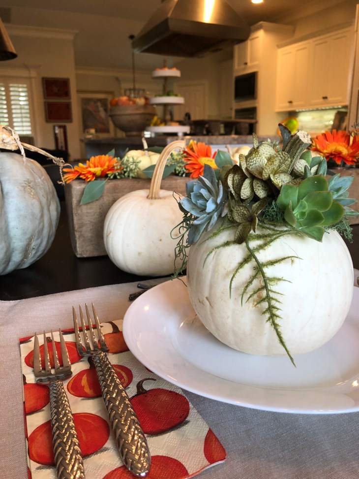 Well, it’s that time of year. The holidays are here and filled with family, friends, food and entertaining. This year I did a fundraiser presentation for our local elementary school on how to created beautiful succulent pumpkins in hopes they could be used through out October and November as decoration and part of your tablescapes for Thanksgiving 🦃🍁🌿🍃